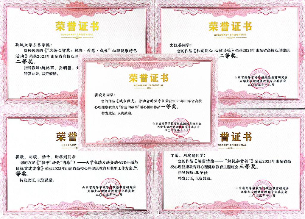 我校荣获2025年山东省高校心理健康教育月展示活动评选一等奖1项、二等奖2项、三等奖2项