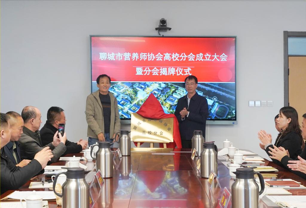 李风杰与邵鑫共同为聊城市营养协会高校分会揭牌。李风杰为新当选的聊城市营养协会高校分会会长、化学与生物系主任王金亭颁发聘书,邵鑫为副会长李振华、吴广庆颁发聘书。