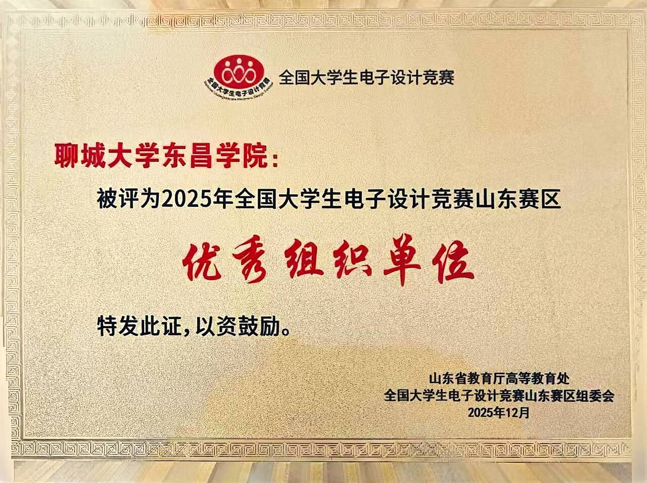 本网讯 近日,2026年“TI杯”全国大学生电子设计竞赛山东赛区师资培训暨2025年山东赛区颁奖典礼在山东管理学院举行。我校获评2025年全国大学生电子设计竞赛山东赛区优秀组织单位,数学与信息工程系教师张汝平被评为优秀指导教师,充分彰显我校在电子信息学科竞赛领域的扎实实力与优异育人成效。
